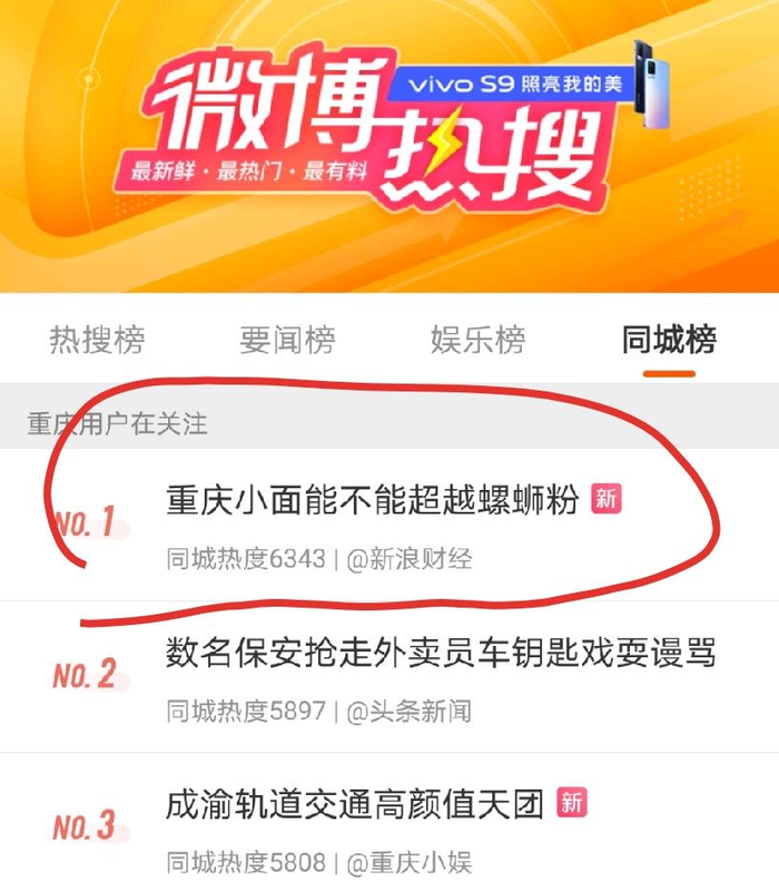 昨天,又有一条与螺蛳粉有关的微博热搜让网友们坐不住了,#重庆小面能不能超越螺蛳粉#的话题让天南海北的网友吵得不可开交。