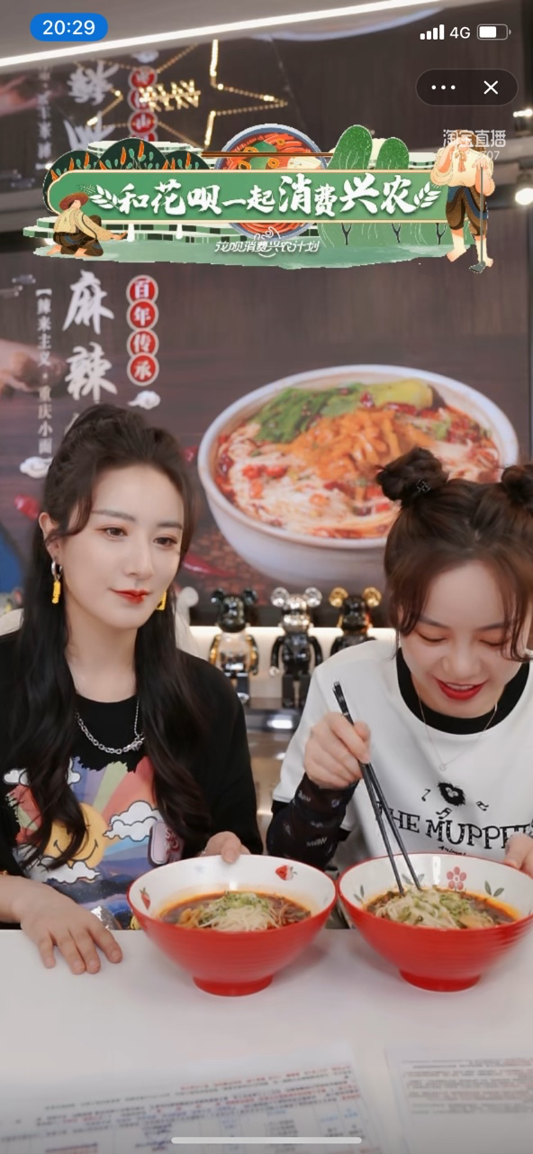 现在政府宣布全力将小面升级成袋装速食版本销往全国,一方面,引入花呗给重庆农户每人获得数千元的春耕农资农具分期免息额度,减轻农户扩大生产花椒、辣椒等原材料的成本;一方面,花呗联动天猫出补贴吸引全国用户来购买小面。3月29日晚上的直播里,薇娅不到10分钟就卖出了6万份,相当于30万碗重庆小面。
