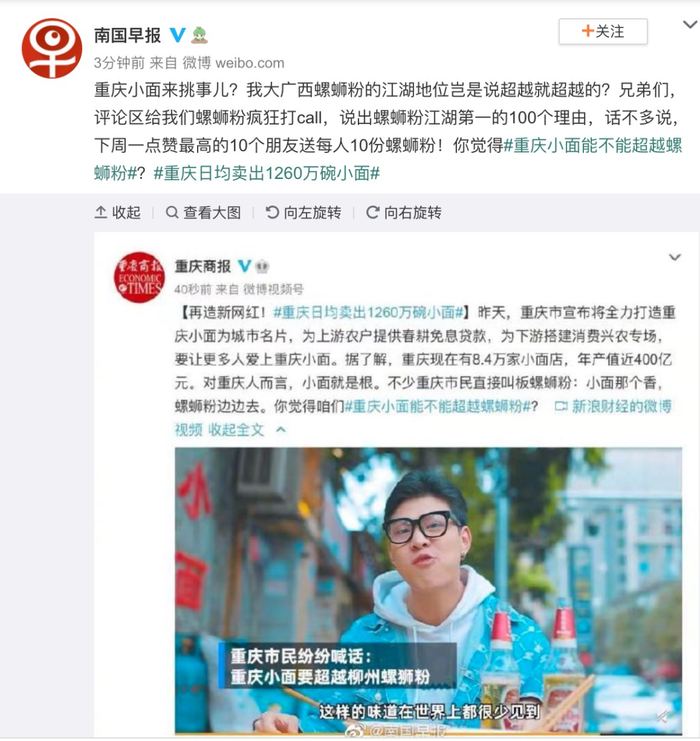 重庆小面宣战广西螺蛳粉?网友的回复亮了……
