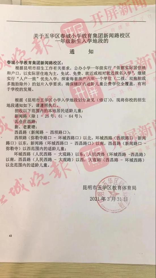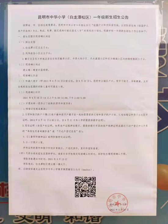 掌上春城讯 3月31日,昆明市主城区小学公布招生入学信息,家长可查看公办小学招生范围、民办小学招生简章。小掌实地走访了昆明主城各片区多所小学划片入学信息,赶紧一起来看看吧!提醒:最终以学校公布为准,如有遗漏可自行前往学校门口查看。五华区武成小学人民路校区