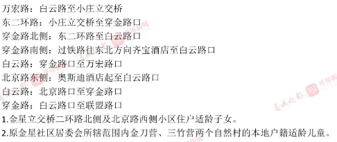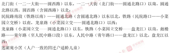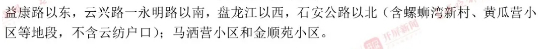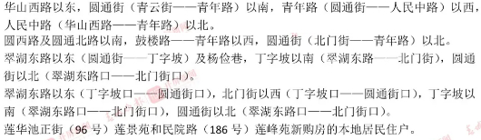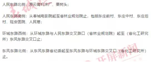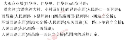 和平小学吴井路:从塘子巷口到环城路口;环城南路:从十二中门口到春城路十字路口以西;北京路:从外贸大楼到塘子巷口的北京路以东;拓东路:从塘子巷口到绿洲大酒店的拓东路以南;和平村;和平新村;和平前村;和平后村;和平北路;黄家庄;石井路;太乙桥。前卫路小学