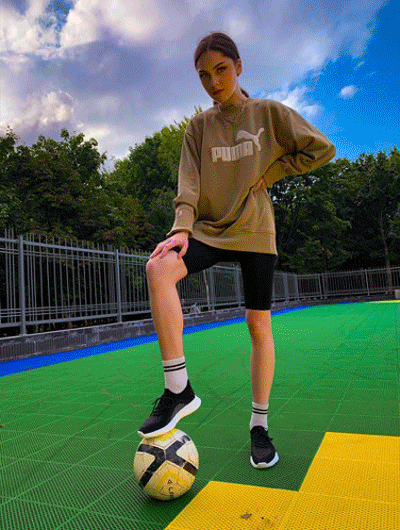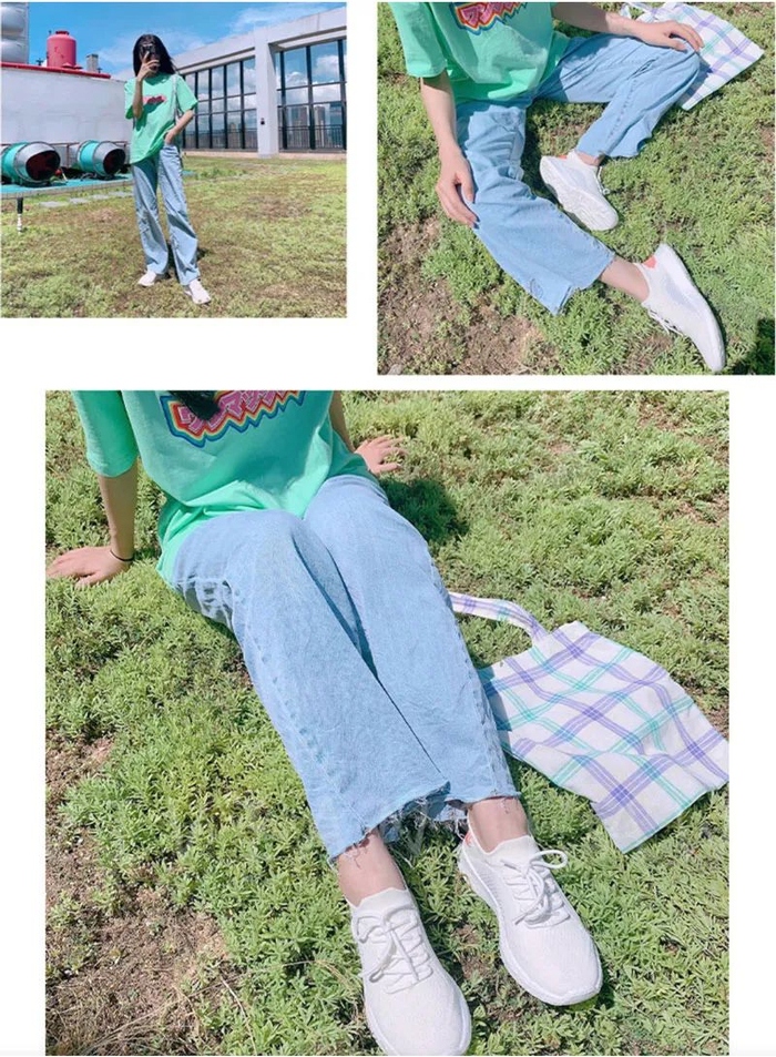 清新的绿色搭配浅色牛仔裤,再配上一双白色爆米花飞织鞋,甜味运动风女孩就这样诞生了~