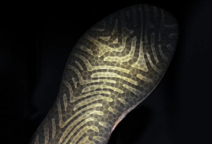 米斯特因鞋底,能看到挤在一起的爆米花的边界线