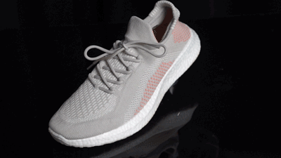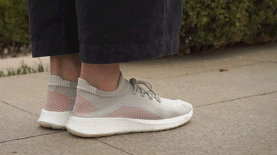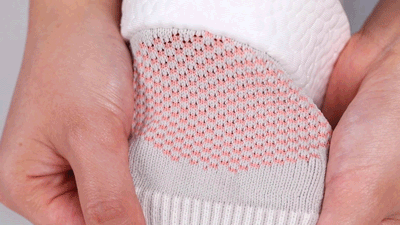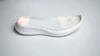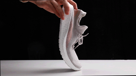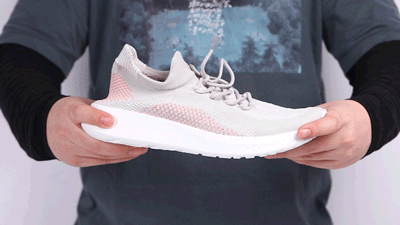 看看这弹性十足的飞织面,用纱线3d针织而成型的,柔韧更耐穿。