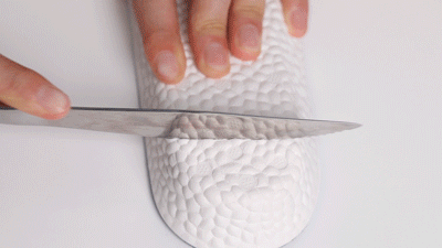 但爆米花鞋底由于高弹力,缓震性能好,无论抡几锤子,盘子依旧完好无损。