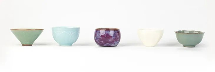 有以玛瑙入釉、天青翠色的汝瓷刻花盏;曾专供皇家、釉厚拟冰裂的官窑斗笠盏;纹如冰裂、风骨匀亭的哥窑花口瓷;甜润素白,刻花灵动的定窑刻花盏;还有绝美无双、巧夺天工的钧瓷圆融盏。