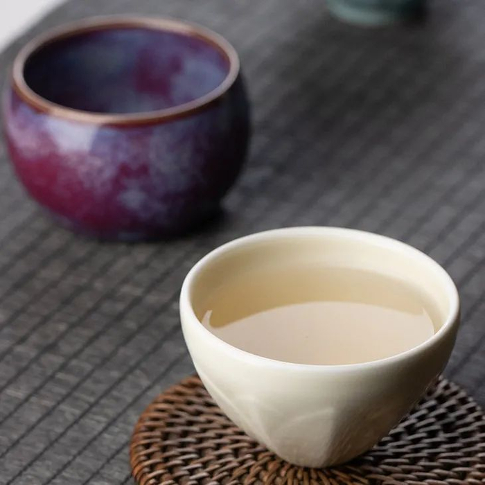 数不清的尝试,不断调整釉药配比,终于,他以玛瑙入釉,尽万方宝料,造就了这一二盏绝色风雅。