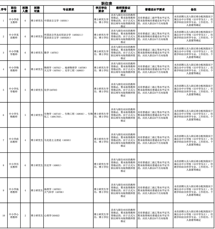 本次共招聘博士研究生50名,具体职位详见《广州市白云区2021年公开招聘教师岗位博士研究生职位表》。