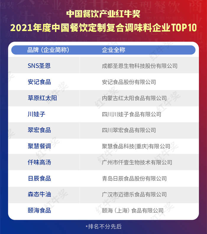 原标题:红牛奖“2021年度中国餐饮定制复合调味料企业 TOP10”正式揭晓