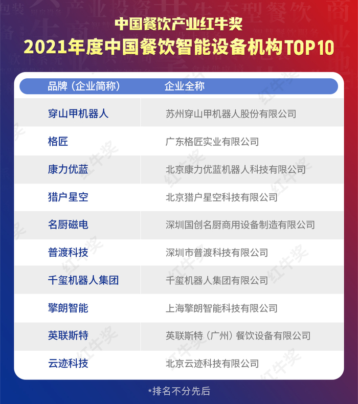 原标题:红牛奖“2021年度中国餐饮智能设备机构TOP10”正式揭晓