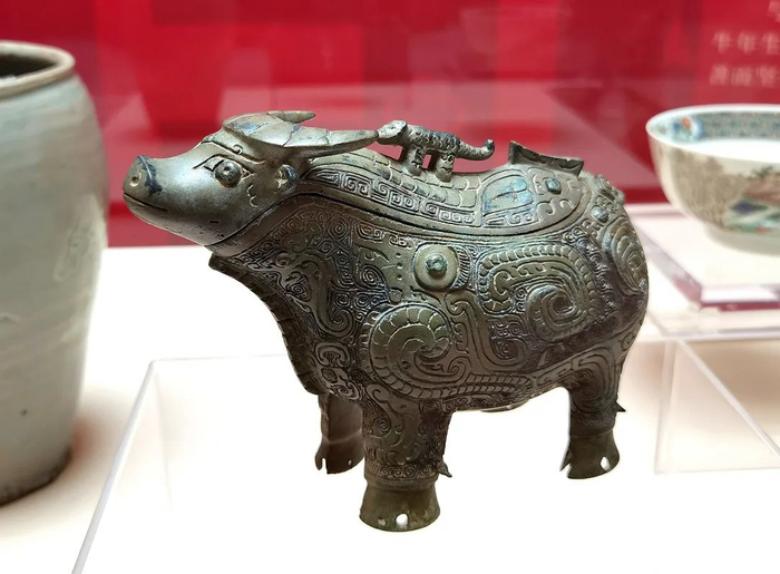 比如凤纹牺觥背后的故事,就值得用“一杯咖啡”的时间讲一讲:它是商代晚期用于盛酒的礼器。整器为一头牛的造型,牛首、牛背作盖,牛背上立有一虎为盖钮。全器以云雷纹衬地,立体图案为精美的凤鸟纹,反映了我国三千多年前工匠细致的观察力和惊人的艺术表现力。