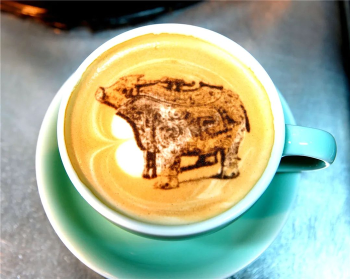 一杯文物主题的拉花咖啡。