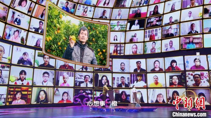 图为易守财在《中国诗词大会》(第六季)荧幕上推介家乡脐橙。 罗永皓 摄