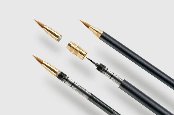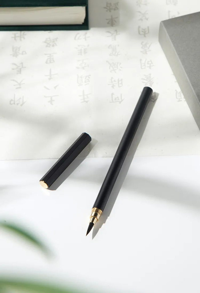 一支理想中的自来水毛笔应该是什么样子?立项之初,笔墨方团队就达成了一致目标:它必须是一支真正的毛笔——无论外观还是书写的专业度。