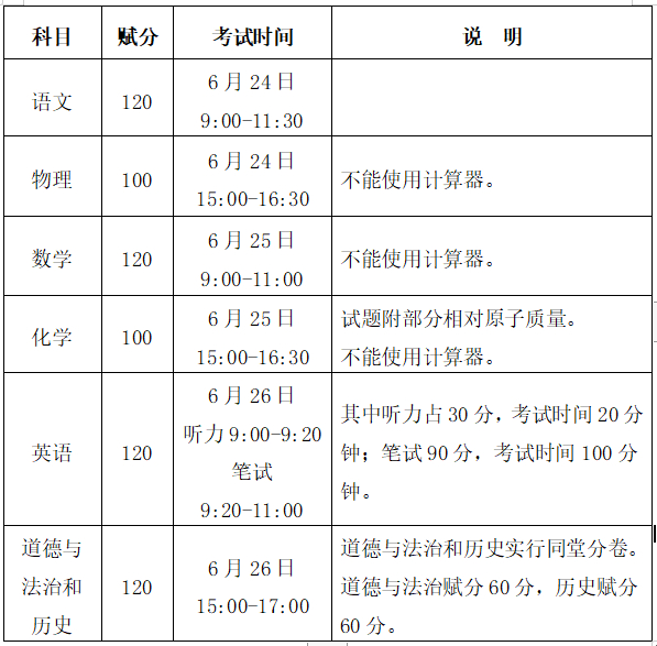 计分科目笔试采用闭卷方式,考试科目、赋分、时间及要求如下表: