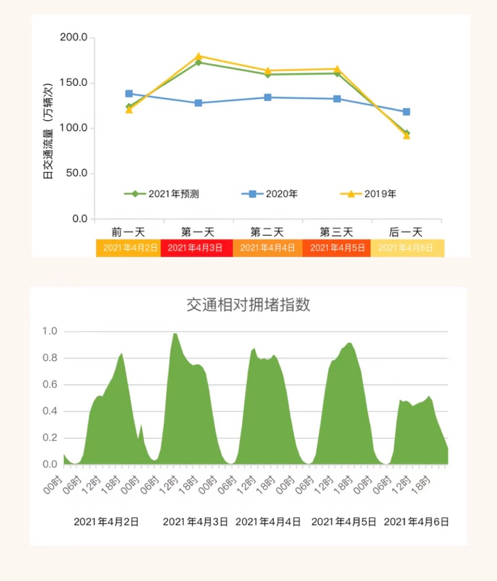 又是一年清明时,今年的清明出行热度用一个次来形容就是“火爆”,近日,贵州省交通运输厅、贵州省公安厅交通管理局联合发布了2021年清明节公路出行服务提示。预计今年清明节期间,贵州高速公路交通总量约493.3万辆,日均164万辆,4月3日9时至14时,4月5日13时至19时为出行高峰时段。