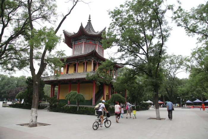 “这一站,我们可以游览西安历史最悠久的公园——莲湖公园。”