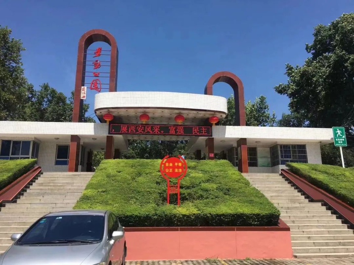 走出劳动路站C2口,步行12分钟,便来到了劳动公园东门口。现在早已看不出,这座公园是从一个苗圃改造而成的。作为西安最早的一批公园之一,劳动公园是西郊的第一座公园,在很多老西郊人心目中有着举足轻重的地位,并早已成为当地不可缺少的休闲场所。