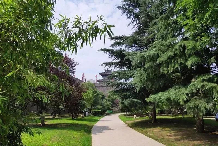 逛西安怎能少得了西安城墙?如果想全方位感受城墙,环城公园可是首选。这座包括明代城墙、护城河、环城林带三位一体的立体化公园,不仅有890亩环城林带郁郁葱葱,护城河水青草绿,还有亭廊、雕塑、诗碑等隐于花草之中,更添乐趣。