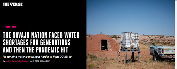 △美国媒体报道,缺少自来水等基础设施让纳瓦霍族印第安人居住区的居民在疫情期间的境况雪上加霜。