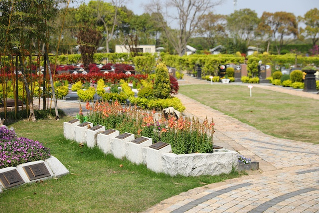 “这些就是节地葬,包括花坛葬、树葬、草坪葬和水葬等,目前在福寿园上海青浦、浦东两座墓园中,生态节地葬的面积总共占60%。我的日常工作是为陵园做绿化设计,包括墓地的绿化维护等,而这些生态节地葬都需要融合我的园林设计。”福寿园的园林绿化工程师周淑芸毕业于上海同济大学园林设计专业,从事绿化设计工作10多年,而投身殡葬业已4年。她告诉第一财经记者,自己以前只是单方面做绿化设计,但如今她的设计都要与客人直接接触,甚至定制小景设计,这令她很有成就感。