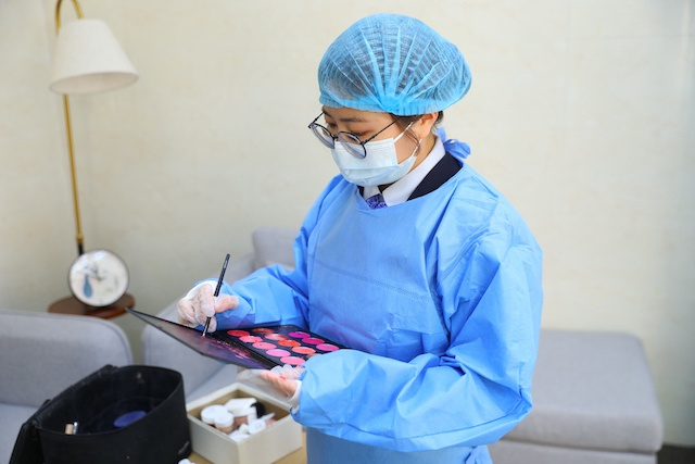 “我们每天早上6点就要上班,因为很多丧仪必须在上午做完,所以我们只能赶早。一般一具遗体需要两个人才能处理完。我们会先将遗体请出来,放置在SPA床上,给遗体沐浴、洗发等,穿上干净的衣服。我们会和家属面对面沟通,确定家属的意愿后给遗体化妆,一般以自然妆容为主,使用的是具有防腐作用的特殊化妆品,一套进口的特质底妆要数千元,这类化妆品遮盖力很强,尽量让逝者看起来面目安详。此外,还有遗体SPA,给遗体做1小时左右的全身按摩,使原本僵硬的遗体肌肉放松,更易穿衣和化妆。”刘三三告诉第一财经记者。