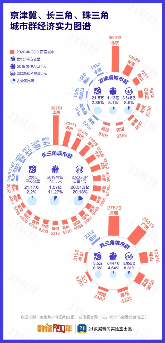 硬核城市群:长三角占据百强20席,珠三角人均GDP最高