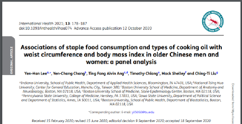 2021年,发表在《International Health》(国际健康)医学期刊上的一项研究指出,基于中国纵向健康长寿调查的研究,调查了6506名居民发现,中国老年人主食摄入量多,则会比较胖。②