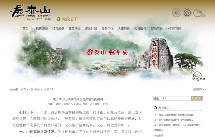 泰山景区回应: