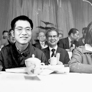 当张彦介绍到:厦门大学校友陈景润教授夫人由昆女士时,台下立刻爆发出热烈的掌声,由昆不得不站起来,向大家致意。