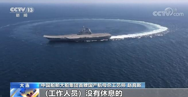 中国船舶大船集团首艘国产航母总工艺师 赵育新:从第一次海试到最后交付,在这一年半的时间里工作人员没有休息的,连轴(日以继夜)地一起在这个工程上一起拼搏。