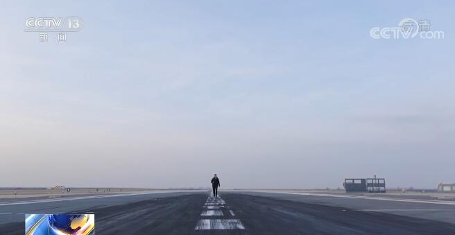 总台央视记者 李宁:这个就是在陆地上来模拟航母舰载机着陆的的平台。我们在这个地方呆了两天,直到今天日落黄昏才终于有机会走上这个平台。因为舰载机训练的频次非常频繁,我们只有在训练的间歇才有机会带大家来看一下。我所在的位置都是黑黢黢的一片,所以这个地方就叫做黑区。这一道道胎印就见证着这支舰载机部队从无到有、一步步成长的过程。