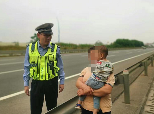 4月1日8点左右,高速公路管理部门正在通过监控设备开展网上巡查时,发现G72泉南高速公路雒容至鹿寨路段有一名男子抱着小孩在高速公路上行走。