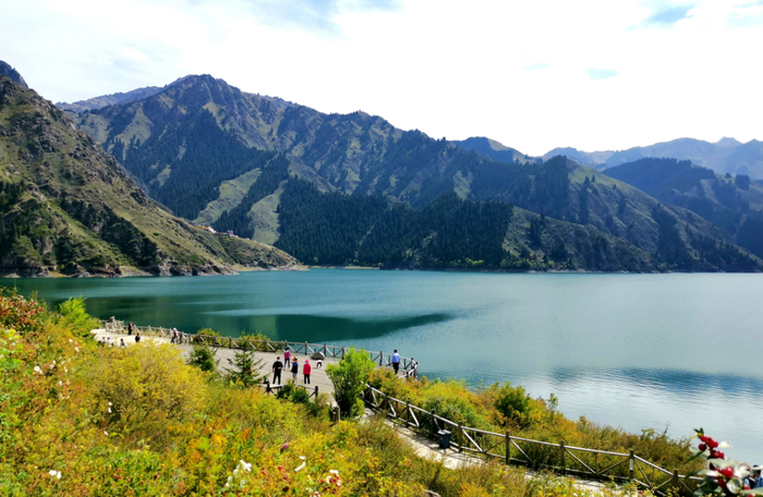 天山博格达峰下的天池也去过两次。记得第一次去,那里的原生态味还很浓烈,可以在岸边徘徊,在沟谷的松林里游荡,一切都处在静谧中。在那里,不仅要看水,更要看雪山,雪山与湖水居然那么近,湖水明亮,天晴的时候微微泛蓝,淡雅的水色和银白的雪山相互映照,好像山水一体一色,只是体态不同,这是在长白山天池边看不到的。那里也有一组慢镜头,但仿佛是秋天里的镜头,凉凉的风,红红的太阳,让你感到一种说不出的爽气。但我有时也在想,这里或许是眼前有景道不得,有画笔也画不得,不是因为有谁题诗在上边,而是无论长白山的天池还是天山的天池,大概都是最难描摹的。尤其是背景宏大的天山天池,很难在颜色的世界里,找到一种浓涂淡抹的相宜搭配。因此,很少看到直接描写天池全景的好画作,也很少见到特别成功的关于它们的全息摄影作品,也许可以航拍吧,但角度呢?