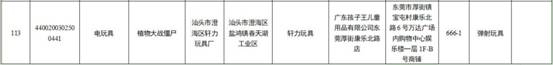其中,生产者为汕头市澄海区轩力玩具厂的电玩具“植物大战僵尸”抽查发现弹射玩具项目不合格,产品商标为轩力玩具,规格/型号为666-1,检验报告编号为4400200302500441,抽样场所为广东孩子王儿童用品有限公司东莞厚街康乐北路店。