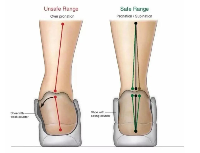 许多专业的运动鞋上会为此在后跟做独特设计,帮助固定脚部,保护运动员的脚不被扭伤,比如L宁。