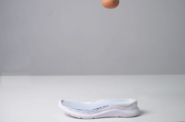 生鸡蛋从30cm高的位置落到鞋垫上,仍能保持不碎!保护膝盖肯定不在话下,不用担心越跑越累啦。