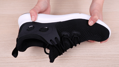 而且鞋子非常柔软,不费力就能把鞋子弯折到对扣,自然上脚后就能轻松贴合脚部动作啦。