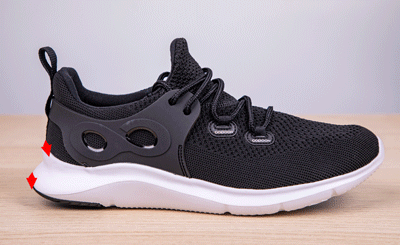 咕咚具体在鞋后跟处设计了什么巧思呢?诶~它在后跟里面藏了一个环绕补强设计。