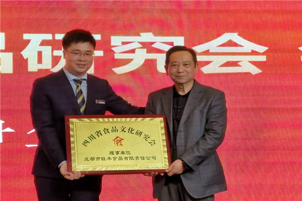 四川省食品文化研究会尹华国为“旺丰”公司颁发了理事单位牌匾。尹华国认为“旺丰”不仅是一家调味行业的领军企业,还是一家有文化、有追求、有理想的企业。“食研会”衷心祝愿旺丰不忘初心,弘扬传承地方特色产业,成为调味品行业最具影响力的品牌!