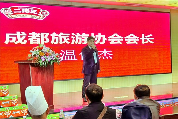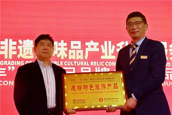 成都旅游协会会长温儒杰授予了“旺丰”公司“成都特色旅游产品”牌匾。