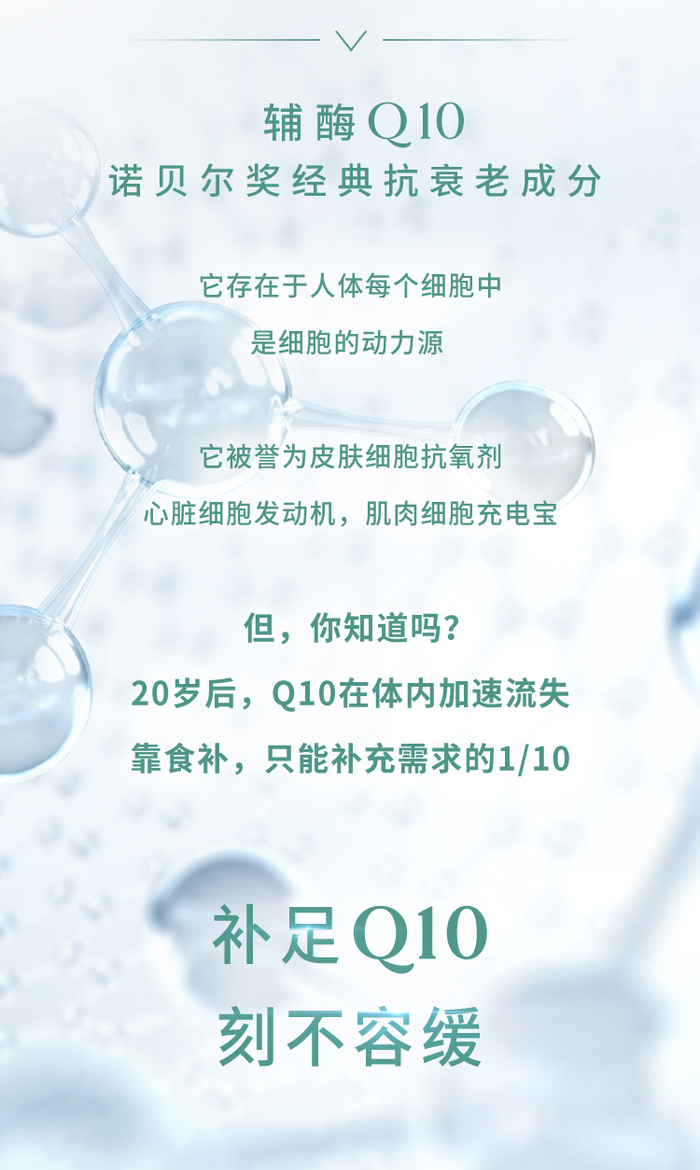 口服辅酶Q10可以让人体的皮肤、心脏和肌肉等器官组织细胞恢复正常代谢和活力,由内而外全面延缓衰老。