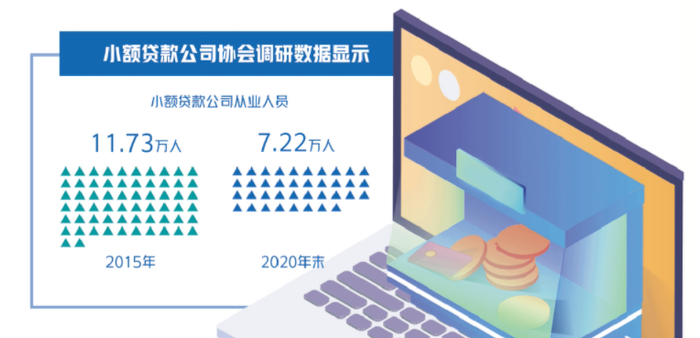2015年至今,小贷行业优胜劣汰加剧,洗牌的惨烈程度超乎想象。小额贷款公司协会关于2015年的一项调研数据显示,一些省份超过1/3的小贷公司不能正常营业。伴随行业的“分水岭”,小贷行业也走到了从业人数的转折点。2015年,从业人员有11.73万人,而2020年末,小贷公司从业人员数仅为7.22万人。