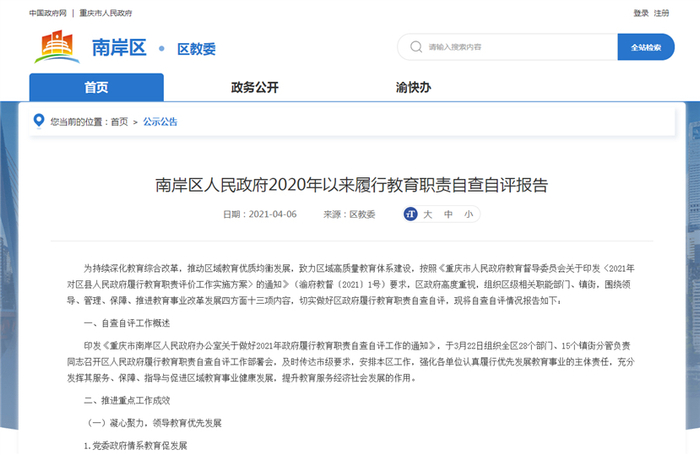 南岸区在公示正文提到,开展教育治理,遏制招生收费乱象。
