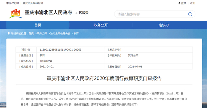 渝北区在《重庆市渝北区人民政府2020年度履行教育职责自查报告》提到,有序开展规范和整治公办学校参与举办民办义务教育学校工作,彻底理顺“公参民”学校管理体制机制,到2021年12月,确保全区10所“公参民”学校清理整顿工作取得阶段性成效,到2023年6月全面完成“公参民”学校综合整治。