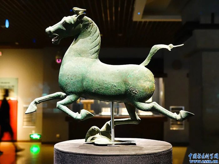 “马踏飞燕”系1969年出土,对其名称和寓意的释读,学界一直争论不休。郭沫若将其定名为“马踏飞燕”,后又有“铜奔马”“马超龙雀”“飞燕骝”“天马”“马神天驷”“跃行铜马”“天马逮乌”等诸多称谓和解释。