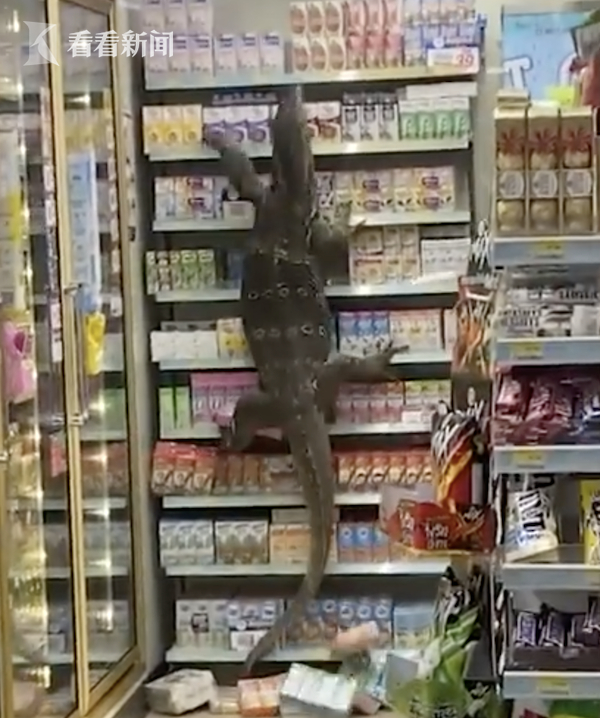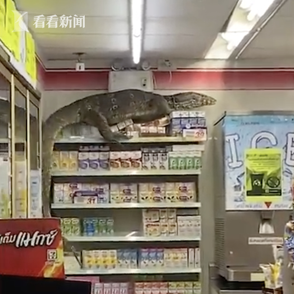 视频|2米长巨蜥闯进泰国便利店 一路横冲直撞爬上货架