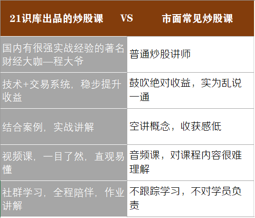 于是,就有了这门《程大爷的A股训练营》课程,这也是程大爷的首门线上技术分析课程,是程大爷联合《21世纪经济报道》旗下知识服务平台21识库,历时一年多打磨的精品课程。