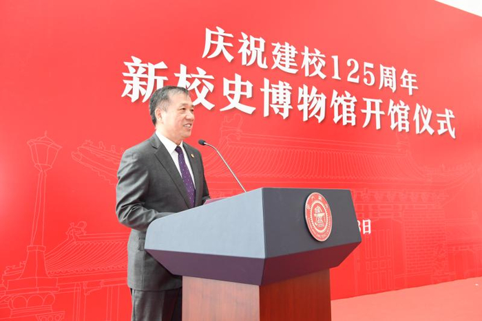 范宝龙代表兄弟高校校史馆致辞。他表示,校史博物馆是当前中国大学校园中独特的文化空间,也是一所大学历史发展的写照和缩影。上海交大和清华大学都是历史悠久、底蕴深厚的百年名校。两所学校有很多共同的学长、校友,以他们的毕生奉献与辉煌成就,写入了交大、清华的历史,也成为中国高等教育史以至世界高等教育史的重要组成部分。希望未来两校可以进一步深化合作,激活校史馆文化资源,探索校史馆育人之路,为世界一流大学建设提供源源不断的内生动力。