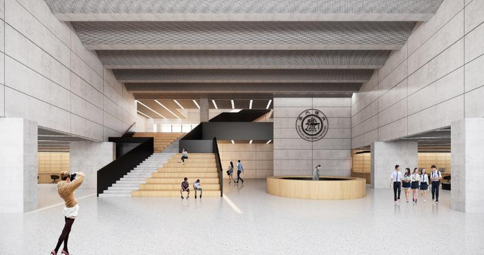 新建学生服务中心位于涵泽湖西侧,第三餐厅南侧,大楼总体规划为地上五层地下一层,建设用地面积 19460 平方米,总建筑面积 24460 平方米,预计2022年底竣工。建筑外部形体自由活跃,与周边环境形成对话,内部空间共享开放,将设置学生智慧服务大厅、多功能音乐厅、多功能宣讲厅、心理咨询中心、保龄球馆、健身房、社团活动室等场所,集中满足学生在事务办理、心理咨询、就业服务、学业发展、能力培养、活动配套、发展研究等需求,让学生办事时只需进一门,最多跑一次。